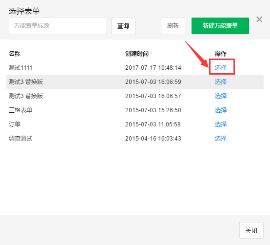 3、编辑好的表单可在微杂志编辑栏高级模块中调出,将万能表单工具模块拖拽至预览页面,在编辑《万能表单》模块处选择需要的表单,确认无误后保存。