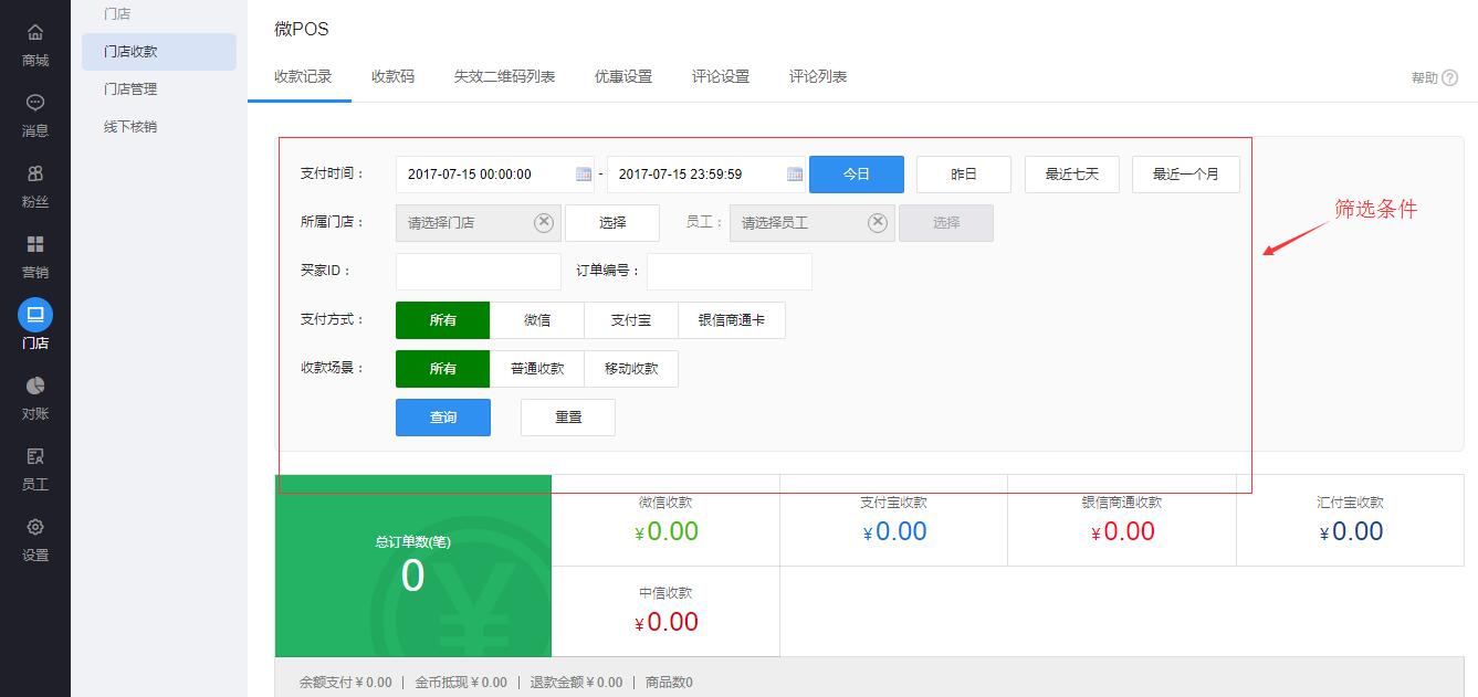 1.登录优物库商家后台,点击门店-门店收款-收款码